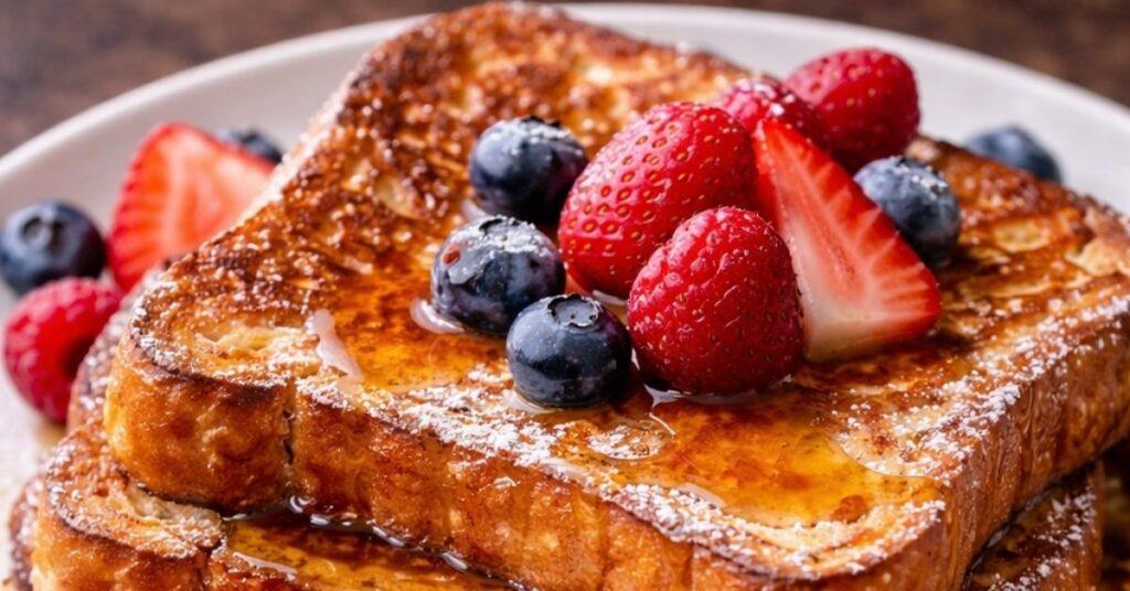 French toast is custard control, absorption timing and surface heat.